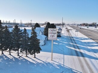 Opportunity is knocking! Have dreams of starting your own business with tons of highway traffic? Here it is! Beautiful large turnkey building could fit many different business opportunities. The East part of the property features a former restaurant with vaulted ceilings, sky lights, booths, tables, chairs and bathrooms. Large kitchen includes cooking station, tables, ovens, wash area, 2 walk-in coolers, and room has an office area. Separate storage room has lots of metal shelf racks and includes deep freeze and fridge. Plenty of space is available for overflow seating and includes tables and chairs and buffet cart. Some of this additional seating space has been previously used as a gift shop while maintaining entrance to the restaurant. The west part of the building is currently being leased by the Rugby Chamber of Commerce and is a great place for tourists to stop and shop or eat. This would be a great asset to any investor who wants to have some immediate cash flow from their investment. Conveniently located near the intersection of State highways 2 & 3 and faces State highway 2 between the Prairie Village Museum and the Geographical Center of North America Monument. The 4 lane highway receives tons of traffic on a daily basis. Different parts of the building will have Electric F/A with propane backup, central air, electric baseboard, or ductless AC. Charming exterior has vinyl siding, shaded patio, frontage road access and parking. Building, land and items being sold only.