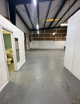 Commercial space with 3 offices, 1 restroom with warehouse/shop area - 2 Overhead Doors. NO AUTOMOTIVE BUSINESS OF ANY KIND: including but not limited to detailing, painting, towing or repairing.