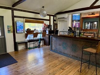 Attention Investors, Entrepreneurs, and Business Owners! Prime opportunity in the heart of Woodstock's bustling commercial district on heavily traveled Mill Hill Road. With nearly 10,000 cars passing by each day, this property offers unbeatable visibility for your business venture. Currently home to a yoga studio and infusion spa, the tenant is in year three of a six-year lease, providing reliable income for the next owner. The building features tasteful finishes throughout, including gleaming hardwood floors, an enclosed studio room, a bar/counter area serving smoothies and health-focused snacks, and a tranquil infusion lounge overlooking the Sawkill. Additional highlights include a spacious outdoor patio with creek views, a private changing room, shower, and restroom facilities—creating a complete package for a wellness-oriented or lifestyle business. This rare Woodstock commercial opportunity combines excellent exposure, in a location that can't be beat!