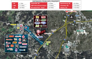 ±3.0 acre site | ±9,600 SF warehouse/build-to-suit | Property is situated within the Greenville-Spartanburg-Anderson metropolitan area, providing excellent connectivity to major markets in the Southeast | Skilled workforce available in the region, particularly in the manufacturing and logistics sectors | Electricity provider: Duke Energy | Gas provider: Fort Hills Natural Gas | Sewer: septic | Anderson County tax map 236-00-029-000 | Less than 1 mile to I-85, ±11 miles to I-385 & ±30 miles to I-26 | ±5 miles to Greenville & ±35 miles to Spartanburg | ±18 miles to GSP International Airport | ±22 miles to SC Inland Port Greer | ±100 miles to Charlotte & ±130 miles to Atlanta
