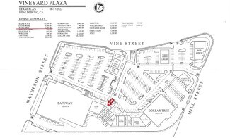 Vineyard Plaza is Healdsburg's largest shopping center with over 20 stores located just one block from central downtown Healdsburg where a lot of banks, restaurants, and hotels are located.