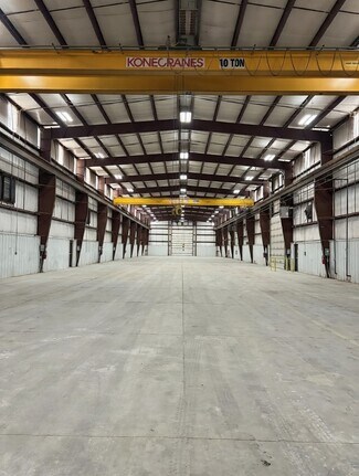 This single-story industrial building was built in 2013 and provides 38,600 square feet of premium space for manufacturing, distribution, or storage operations. The building’s flexible layout includes an open and adaptable warehouse as well as 3,000 square feet of dedicated office space purpose-designed for administrative, managerial, or client-facing operations, providing a functional balance between administrative and operational needs. The warehouse includes five 10-ton cranes with 22-foot hook heights, as well as robust loading infrastructure, including eight drive-in doors and wide access points. The facility also boasts great electrical power infrastructure, with a 3-phase heavy power supply.