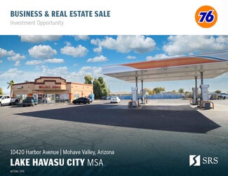 SRS Real Estate Partners-West, LLC is pleased to offer the opportunity to acquire the fee simple interest (land & building ownership) and enterprise of a 76 investment property located in Mohave Valley, AZ. The property benefits from excellent visibility via significant street frontage and a large pylon sign along Harbor Ave. Additionally, the building features 8 gas station pumps, providing ease and convenience for customers. Please contact agent for additional details and confidentiality agreement. Starvin Marvin’s Flatburgers recently signed a lease, providing supplemental income and added tenant stability for the next landlord.