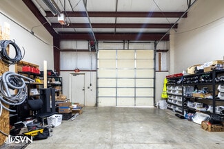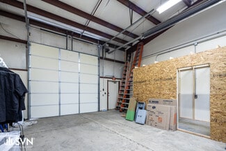 It features an updated, functional office layout that includes private offices, open areas suitable for cubicle use, restrooms, and break areas. The balance of the space is dedicated to warehouse use, offering 20-foot clear heights sloping to 18-foot eaves, gas-fired forced-air heating, and a 10-foot by 12-foot automatic grade-level drive-in door.