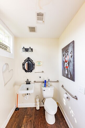 Turn-key business for sale just off the courthouse square in Thomaston. Busy street in downtown with lots of vehicle and foot traffic. Business is set up for an ax throwing venue with a beautiful custom built bar. Abundant opportunities to use this great commercial space. These connected side by side buildings have many unique features, such as 6 ax throwing lanes, an entertainment space with elevated stage, custom kitchen with commercial grade appliances, and a large back deck perfect for overflow seating or private parties. Sale includes business, building, lot, furniture, and equipment. Both buildings have their own parking in the back. Do not miss out on this great location for your business. Owner Financing available!