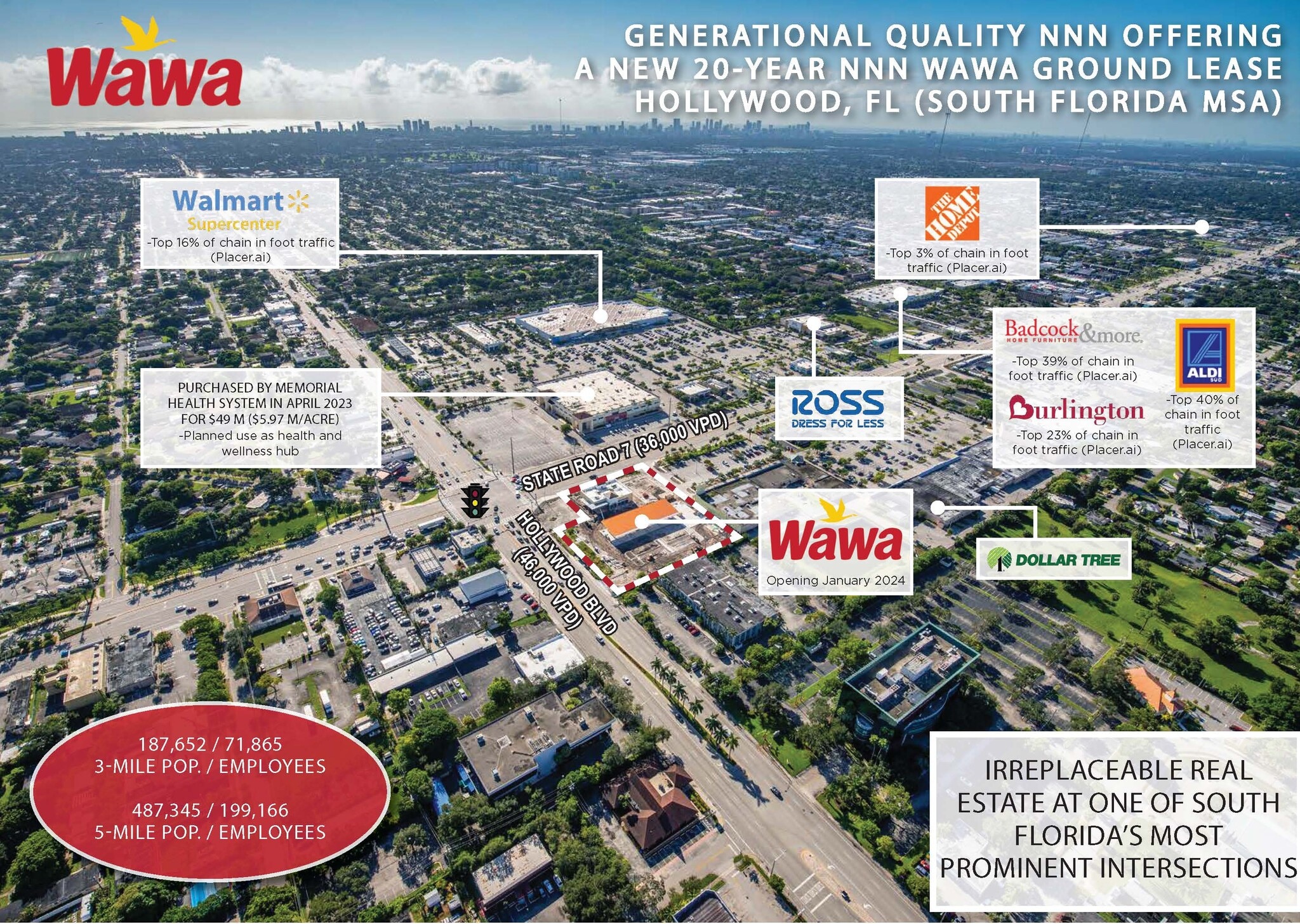 • Wawa's First Location in Hollywood | Densely Populated Area | 187,652 Population within 3-Mile Radius
