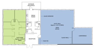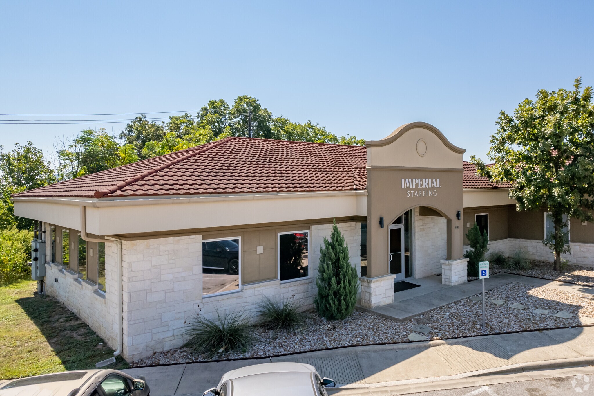 Professional office condo located in Pecan Park Professional Plaza near the intersection of Hwy 183 and FM 620 in Northwest Austin. Modern landscaped building with ceramic tile Mediterranean style roofs and Austin limestone and stucco exterior with windows on all sides. The large decorative columned façade is perfect for identity signage. The interior features a glass double door main entrance into an open lobby/receptionist, 2 large private offices, 2 large separate open areas for workspace with built-in cabinets, a large conference room, 2 handicapped restrooms, an IT room, a break room with refrigerator, sink, dishwasher, cabinets above/below and decorative seating area. There are 2 separate HVAC units servicing the space for convenience and optimum control.