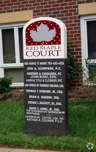 Great location just across from Fairfax County Courthouse at the bend on Judicial Drive and Jones Street. Very visible office condo on 1st floor at entrance to Red Maple Court Office Condominium. Efficient & large size floor plan features 2 private offices, conference room, reception/waiting area, kitchenette, Bathroom & Utility closet. Plenty of free surface parking & exterior signage allowed.