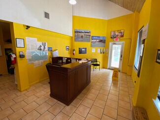 One of the first high visibility buildings as you enter into Key Largo on just under a half an acre of commercial property. This yellow two story office has 3936 SqFt under a/c and 900 SqFt of covered porch/parking. The ground floor north side is 1,300 SqFt and is currently leased to the Visitor's Center. The ground floor south side is 1,200 SqFt and the second story is 1,400 SqFt available for lease at $51.00 per SqFt (this is the base price plus their percentage of taxes, insurance and maintenance costs). This property is available for purchase and/or lease. New metal roof was installed in 2024. The back two lots are fenced and currently used as a storage area. Assumable SBA 504 loan in the amount of approximately $1,642,000 with a 25 year amortization rate.