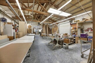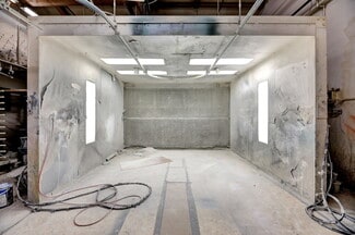 The property includes a 5,584 SF warehouse/shop with (2) grade-level roll-up doors, 9’6” clear height, a commercial paint booth, and 600 amps of 3-phase power (3 x 200A panels). Interior buildout features a 240 SF office and an 888 SF 1-bedroom/1-bath apartment, ideal for live/work use or rental income.