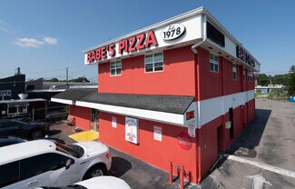 2 story pizza restaurant located in middle of Brandon on a very busy intersection.