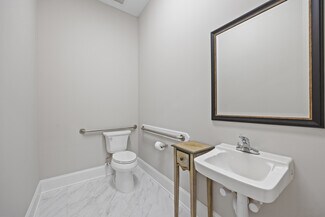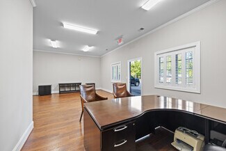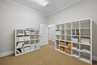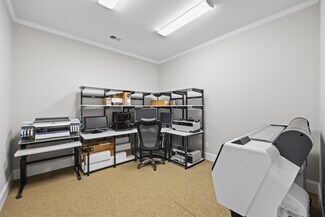 • Professional functionality: Five private offices, kitchenette, two restrooms, plus storage and utility space.