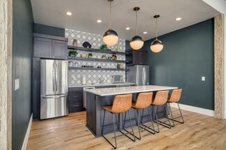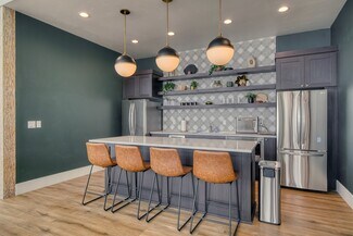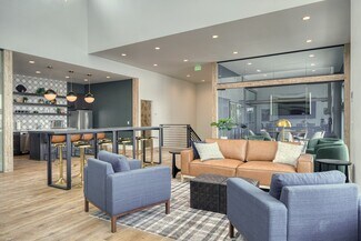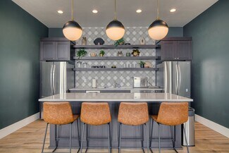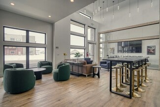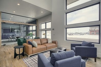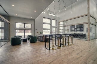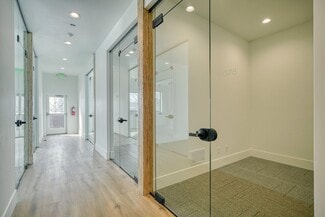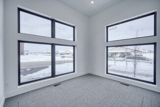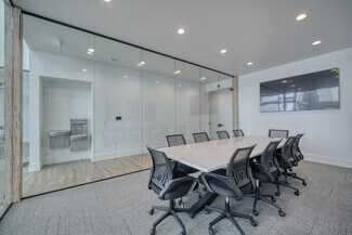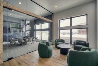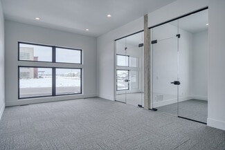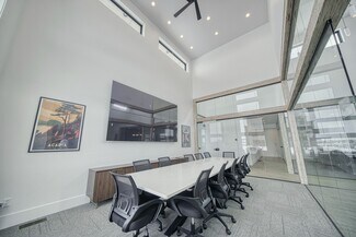 New construction office with modern design and functions. Large common area seating including chairs, couches, and two bar tops. Full kitchen including two fridges, dishwasher, microwave, air fryer, dishes etc. High ceilings with lots of glass and natural light. Three conference rooms available for use ranging from 6 person capacity up to 12. Conference rooms equipped with TV's, USB-C adapters for device broadcasting and streaming options (Wi-Fi).