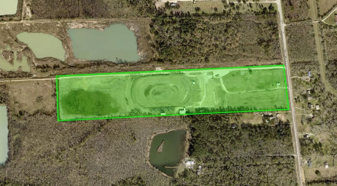 Has buildings on the property that were formerly used for concessions and bathrooms as well as ticket offices (see photos). Currently has grand stands on the property. The possibilities for this piece are multiple. Lay down and storage rental yard. Development for MHP, restructuring as an entertainment venue, dirt bike/car racing and/or flea market, commercial development of any kind. Priced at land value. This is a great deal!