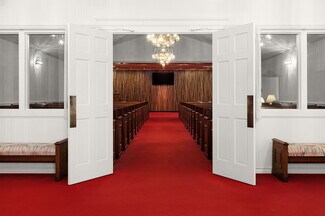 Inside, the ADA compliant layout offers a mix of large open spaces and private offices, including a central hall that holds upwards of 100 people complete with a sound room, multiple restroom facilities throughout, and several rooms with direct exterior access. Whether you're envisioning an event center, worship facility, private school, professional office hub, or a restaurant with banquet capabilities, the structure provides endless opportunities for transformation. The size and layout of the building offer unmatched flexibility for both public-facing and operational needs.