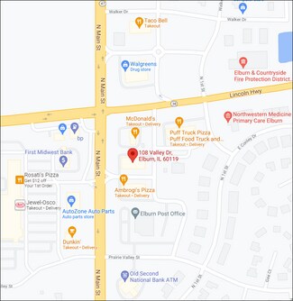 Great incentives being offered - Free Rent for Term(s): 1 Year, 3 Year, and 5 Year (Contact Angela for details) 1,150 - 2,500 SF of Retail/Office/Medical space for lease at the highly trafficked intersection of Route 38 and Route 47 in Elburn. Prairie Valley Center offers flexible units with large full length windows to allow lots of natural light. Close proximity to residential and other retail including Jewel, Walgreens, McDonalds, Post Office, Banks, etc. Ample parking and visibility with signage. Located at the major intersection of Main St. (Route 46 & Lincoln Hwy (Route 38) in Elburn. Nearby businesses include Jewel, McDonalds, Taco Bell, Post Office, Walgreens, Dunkin, Banks, etc.