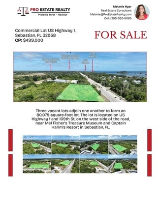 • Three vacant commercial lots on US Highway 1 in Sebastian, FL, offering prime development potential.