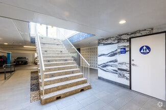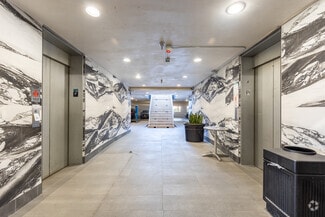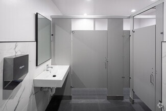 The recently renovated lobby impresses with a soaring two-story ceiling, a tranquil water lagoon with mosaic-tiled fountains, bookmatch porcelain marble and Venetian plaster walls, a modern touchscreen directory, and dynamic LED lighting that enhances the sophisticated ambiance. Tenants enjoy high ceilings, floor-to-ceiling windows, on-site and subterranean parking, a rentable 15-person conference room, and full-time on-site property management. The building is ADA-compliant and equipped with a secure access system and extensive security cameras.