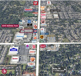 Excellent location, good visibility and easy access in a high growth area with above average demographics. 1,400 SF - 8,063 SF of retail and 2,000 - 3,600 SF restaurant space available. Great mix of national tenants including: Cato, Sally Beauty Supply and Dollar Tree. Serves Bixby, Glenpool, South Tulsa and SW Broken Arrow residents. Located on the NW/C 111th & Memorial, just 1.5 mile south of the Creek Turnpike
