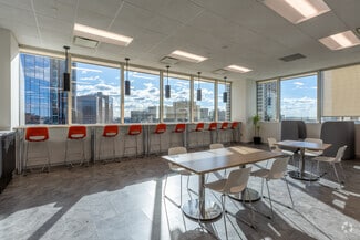 This 22-story, 420,000-square-foot granite and glass tower offers tenants a premium office experience in a prestigious setting. The building features an elegant, modern lobby, high-speed elevators, and a newly renovated sixth-floor lobby anchored by a full-service cafe. Additional amenities include a 945-space covered parking garage, on-site property management, and 24/7 security. A brand-new fitness center was just opened, and a state-of-the-art conference center is currently under development, further enhancing the tenant experience. Renovations to common corridors are also planned for next year. The unique design of the building allows sweeping panoramic views of the downtown skyline.