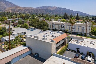 Office suites available located in a garden-style office building just North of Old Town Monrovia. Suite C has 945 square feet with 3 private offices and an open working area. Suite D has 800 SF with an open working area and two executive private offices. It has access to common area restrooms and private covered parking in the lot below the space. It has excellent natural light throughout. Move in ready! Two on-site parking spaces in the covered parking lot plus visitor parking. Additional street parking available. Walking distance to Old Town restaurants, Von's, other retailers and the post office. Perfect for therapists, attorneys, insurance, real estate, etc.