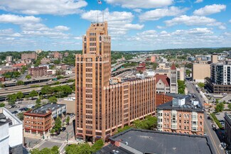 Multiple office spaces ranging in size from 605 to 15,176 SF contiguous are available for lease in the iconic 173,000 SF State Tower in Syracuse‘s Hanover Square. Aside from office space this mixed-use property features 61 high-end residential units on floors 8 through 21 and ground floor retail. Amenities include 24/7 lobby attendant, bike racks, attached parking garage, on-site restaurant, conference rooms with state-of-the-art technology, on-site management and maintenance staff.