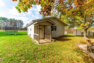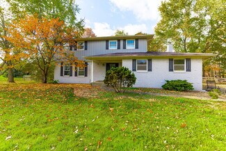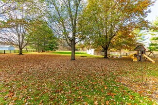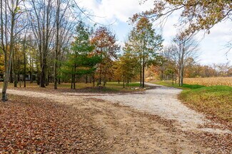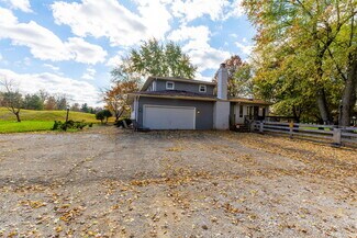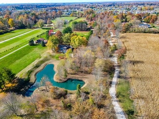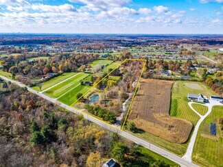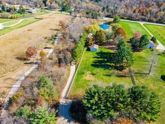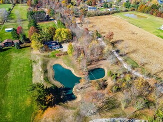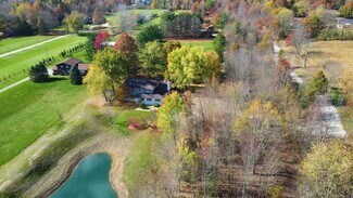 $100,000 Price Reduction!! 12.218 acres in the City of New Albany offers a beautiful, serene, private setting with landscape berms, two ponds, a horseshoe drive, a mostly wooded lot with many mature trees and a stream at the very rear of the property. There is a 2 story, 4 bedroom, 2.5 bath home with 2,302 SF above grade with living rm, dining rm, family rm, 4 season sunroom, eat-in kitchen, recreation/additional bedroom in the basement and attached 2 car garage - and a 1.25-acre wood fenced rear lawn area off the back of the house with a detached 720 SF (24'x30') outbuilding used as a small studio/game room with workshop/storage. Additionally, there is a separate 768 SF (24'x32') wood barn with loft. The lot is 343' x 1732' and has walking trails on site and the parcel backs up to New Albany Links golf course.