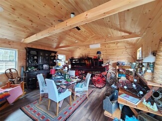 This highly visible 26+ acres fronts on NYS Route 17B in the Town of Bethel, NY and offers amazing possibilities! Rt 17B, also known as The Woodstock Way, is the main thoroughfare and gateway to Bethel Woods Center for the Arts (original 1969 Woodstock music festival site), recreational lakes, hiking, restaurants and Western Sullivan County. As a popular location for tourists with a thriving primary and second home population, it is a fantastic location for commercial ventures. Zoning is C-17B, Highway Commercial District which is a favorable zone for many possible uses (zoning table is in documents). Offering includes two houses; one has been converted to an antique retail shop with two levels of show space (8-9 rooms), a restroom and a full walk out basement for storage/ workshop. Cottage is rented and offers 2 BR’s, open concept and a full bath. Newer Barn (18x24) is insulated and heated and is perfect for studio space/ additional retail/ storage. Main house is approximately 2000 SF, not including the heated attic, and cottage is 904 SF. Additionally, there is an old barn on the property near the cottage that needs work. Property is open and wooded and has a small frontage on a secondary road as well as over 700 feet on Rt. 17B. A great deal of the property is undeveloped and offers a blank slate for numerous opportunities in a sought-after location: think agri-business with plenty of room for gardens, growing and animals, restaurant/ wedding venue with room for events, bed and breakfast, offices, antiques, artist colony or residential development. The list goes on…. Super Spot! Commercial Property with High Visibility and High Traffic in Hot Location! Heart of the Sullivan County Catskills… What more could you want?