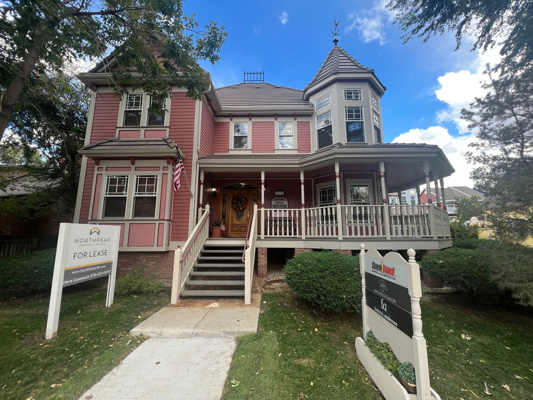 10964 S Pikes Peak Dr. is a prime office space available in Parker’s historic downtown district. The entire first floor is available. The property features a beautiful wrap-around porch, exquisite entryway, and impeccably maintained original woodwork and trim. The owner takes care of the grounds and has the building cleaned regularly. The site is walking distance from Mainstreet restaurants and shops and has designated signage for companies to cater to the significant foot traffic.