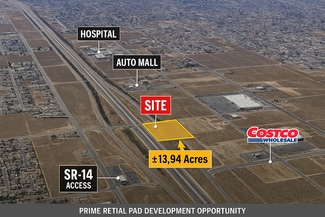 INVESTMENT HIGHLIGHTS • Signalized hard corner at Palmdale Blvd & 10th St W • ±13.94 acres suitable for retail pad and multi-tenant development • Adjacent to Costco, Target, and Home Depot • Excellent frontage, visibility, and access • Immediate access to SR-14 Antelope Valley Freeway • Zoned PDCPD – Commercial Planned Development • Ideal for QSR, bank, and national service retail • Flexible configuration allows pad subdivision and phased development