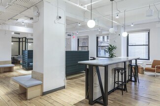 Looking to give your business a fresh perspective? This Lower Manhattan office space features four floors of beautiful lounges, art-filled meeting rooms, and panoramic views for team collaboration and big thinking. Ideally situated at the intersection of FiDi and Tribeca, you’ll have quick access to heavy-hitters in both commerce and creativity. Not to mention the convenience of the A, C, 2, 3, N, R, and W trains all within a block or two. From festive cocktails at The Wooly Public to south of the border fare at Rosa Mexicano, this dynamic neighborhood has a wealth of drinking and dining spots—perfect for team wins or client dinners. In addition to our standard suite of amenities, this location also has a wellness room for optimizing work-life balance. Beat the grind and empower your employees by setting up shop at this Lower Manhattan workspace.