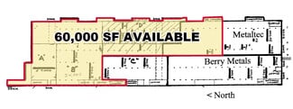 Extremely heavy duty construction, industrial and warehouse building with 60,000 SF is currently being remodeled and is available for lease. Large column spacings. The space has 18’ to 24’ high ceilings and large drive through work areas. Site offers three (3) five ton cranes and one (1) 12.5 ton crane. The floors have a thickness of one foot up to two