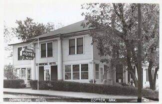 Opportunity here for an exciting “Encore Career”! You’ve retired, traveled, started hobbies. Or are you just starting out and want a true turn key business. Business skills you have earned during a lifetime, sitting on a shelf. This turnkey, owner operated opportunity is waiting in Historic Cotter Arkansas. Fly fishing trout capital of the world, year-round visitors from all over the world. Rehabbed to original glory a 1903 hotel has on main a volume ceiling in lobby, 3 en’suite guest room. Central room has picnic tables and comfy furniture, enjoy a meal or just relax. Cooks’ kitchen is amazing, commercial gas stove and refrigerator, workspace on stone counters. State-of-the-art laundry, multiple storage rooms fully stocked with supplies and linens. The second floor has 3 full baths, 9 rooms, flat screens & split systems. Fire pit and grill in yard, guest parking. Hotel is booked into 2026!Family, corporate, vacation rental, wedding venue, resort. Minutes to White River, in entertainment district, all inventory conveys with this unique opportunity!