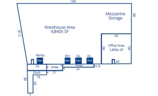 Property Summary: Building Size: ±11,440 SF Office Area: ±1,600 SF Warehouse Area: ±9,840 SF Site Area: ±1.15 Acres Year Built: 1983 Zoning: IGD (Industrial General District) Features: Doors/Loading: Four (4) Total Doors / Two (2) Grade-Level / One (1) Dock-High / One (1) Ramp Structure: Concrete Block & Metal Clear Height: 16'–18' Fencing: 6' Perimeter Fence Electric: Single-Phase, 120/240 Volts Roof: PTO Membrane Storage: Steel Mezzanine Outside Storage Available