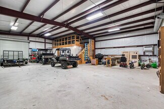 The site includes a custom, single-story residence with an open floor plan, high ceilings, spacious great room, and gas fireplace—well suited for executive housing, office conversion, event-style use, or combined residential/business occupancy. The kitchen is fully equipped with double ovens, gas cooktop, large island, and a butler’s pantry with wine refrigeration. The primary suite features a spa-style bath with jacuzzi tub and separate shower. Additional features include a large utility room with extensive storage and stainless-steel sink, new carpet in all bedrooms, and automated window shades in main living areas.