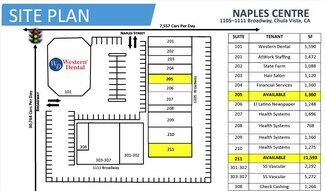 Naples Centre is strategically located across from approximately 1,000,000 square feet of retail such as Costco, Walmart, Target Big Lots, Starbucks and Many More! Naples Centre is located on a signalized high-traffic corner! 30,768 Cars Per Day along Broadway! Close Proximity to Interstate 5. This spot enjoys a strong retail intersection, which means it’s a hub of activity. The area is well-connected and easily accessible, making it convenient for visitors and patients alike. Whether you’re seeking medical services or exploring the neighborhood, this location offers a range of amenities and services. Some of the Achor business are SS Vascular Surgery & Endovascular Therapy, located at 1111 Broadway, Suite 305.