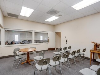 • Adaptable layout with a large sanctuary-style assembly area, multiple meeting rooms, & several restrooms that support church, school, or other uses.