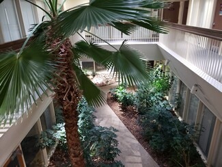 Unique property with Palm Tree in large central lobby area with natural light, vegetation, multiple entrances in and stairs and elevator, plenty of parking, nice walking / public transit / light rail access nearby. Several major renovations and improvements. Shower in building, ADA restroom / ADA Accessible, Lots of parking. Great social distancing site with large floor plans available, individual offices available, Separate entrances, multiple stairs / elevator, large corridors, updated HVAC, great walkway wit greenery and plants, multiple restrooms, very responsive management and maintenance.