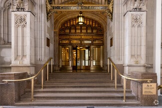 This limestone-faced building with its distinctive Gothic architecture and meticulous details including towers, gables and carving was originally designed to complement neighboring Trinity Church. The Trinity Building extends the full block between Broadway and Trinity Place. Restored blue limestone facade. Marble lobby. Stained-glass windows. Gold-leaf detailing. Parabolic lighting. New state-of-the-art electrical system. HVAC systems. Video security system. Modernized elevators. Extra high ceiling heights. Superior quality carpeting. Newly decorated, elegant corridors. 24 hour/7 day access. Uniformed concierge. Additional entrance on Trinity Place. Subway entrance in building.