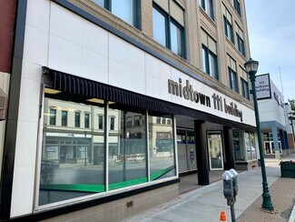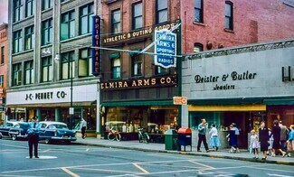 A striking four-story, mixed-use mid-century B-class building in downtown Elmira, 111?N?Main?St offers approximately 1,500?sq?ft of prime office/retail space on the first floor (available January 2026). This versatile space—formerly occupied by a staffing company—is well-suited to professional services, retail, or client-facing operations. It includes a spacious main area, private office, conference room, kitchenette, and bathroom, with direct street access for excellent visibility and foot traffic. The building features high ceilings, abundant natural light, skylights, an atrium-style lobby, and controlled access—with amenities such as on-site property management, bicycle storage, and air conditioning. The central Elmira location places it within a vibrant professional corridor that includes property management firms, law offices, and tax specialists, with a Walk Score® of 79 and Bike Score® of 83. Leasing terms are flexible—utilities are included in the base rent—making this an ideal opportunity for businesses seeking a prominent downtown presence.