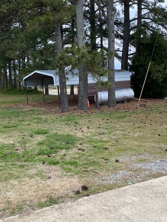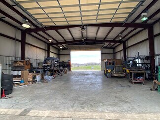 Surveyed acres. Level lot w/ paved road frontage. Property has well water & a septic tank. 45x60 Shop w/ 2 - 16x24 electric rollup overhead doors. Good overhead lighting & many electrical outlets. Has bath w/ commode, sink & fiberglass shower. 60x60 Equip Bldg - open steel beamed equipment shed w/ gravel floor. Propane tank that has not been used by current owner. Concrete slabs at back of prop. Carportby propane tank & 240 sq ft utility bldg used as an office. Nice building site to right of bldgs.