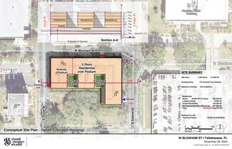 The opportunity is to acquire a .85-acre site in downtown Tallahassee, FL that is zoned CC (central Core) allowing for office, retail, hotel, townhomes, apartments, medical, etc. The zoning has no height restriction, no parking minimum, and no setbacks. All utilities are at the site. The site is approx 260 feet by 122 feet. Call for details. The property is located at 111 W. Bloxham Street in Tallahassee, FL. The site is ideally located across the street from the FSU school of Communication science and the Attorney General's office. The site has frontage on Adams Street, Duval Street and Bloxham Street. The site is located less than 1,200 feet from the new FSU College of Business, Cascade Park, and the Capital Building. It is less than 1,900 feet from Somo Walls, AC Marriott, Proof Brewing, FSU Law School, FAMU, and the Tallahassee Civic Center. It is 1 mile from Doak Campbell Stadium.
