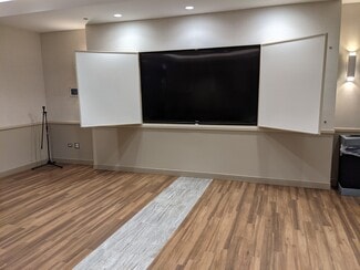 The First Floor was renovated in 2019 including the lobby, restrooms and Leslie Hall. Leslie Hall can seat up to 239 people and be subdivided with sound proof panels into 3 spaces. Each space has a new sound system and a large monitor or projector that can work independently or in unison if the room is not subdivided. Two sets of glass doors open to a Senior Garden behind the building offering outdoor space.