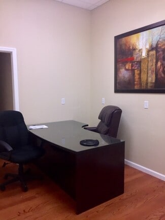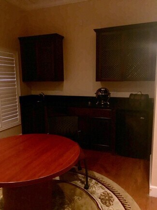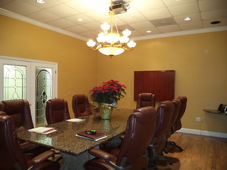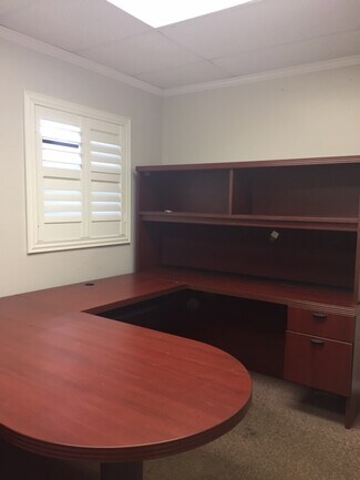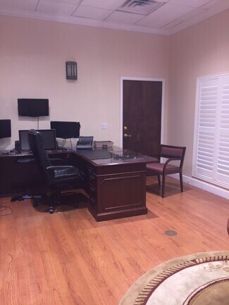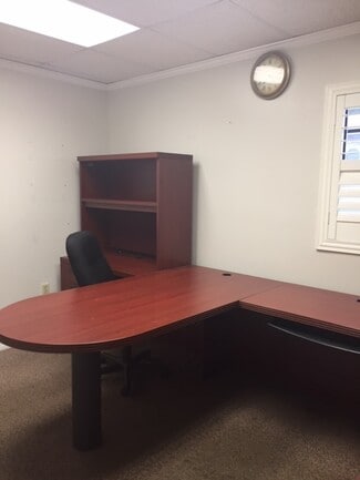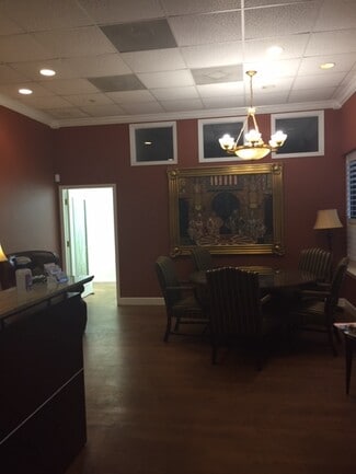 Former law firm building that included a mock-courtroom and law library has been converted to a full service shared office space. Each tenant in Suite 115 has their own private keyed office and shares kitchen, bathrooms, conference rooms and reception. Have the feel of a large elegant office for the price of a small individual office. All rent includes, water, electric, sewer, trash and Wifi. Move in ready. Contracts are month to month, so no long term obligations. $595/Mo. plus tax. Showings available.