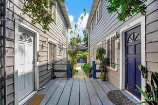 Duplex Lower Units: The two downstairs 1bed+1bath units each feature very large private rear outdoor patios/wood decks that can be accessed from the kitchens and both decks were just fully rebuilt. These units also feature an additional room off the back of the kitchen that feels like an open atrium. Unit 1120 (lower left duplex unit when facing the property) was just renovated in 2025 to a high end modern standard similar to the unit directly upstairs, including an in-unit washer/dryer and new windows. Unit 1118 (lower right duplex unit when facing the property) has the most unique feel of all the duplex units. Crown molding is abundant, and the entire unit features the original Douglass Fir wood flooring. The kitchen has been opened to the main living area in this unit and has been updated to a modern style but still features the original stainless countertop with glass cabinet on top. The bathroom is modern but has kept the claw foot bathtub. This unit features a separate laundry room in the back of the kitchen that also provides access to the back patio.