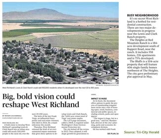 The Tri-City Herald has quoted the City of West Richland to be a “hotbed” of residential construction. The Lewis & Clark Ranch is in the pathway of the City’s future growth and is currently in comprehensive planning. The Red Mountain Center (located at the gateway to the Lewis & Clark Ranch) is well postured to accommodate the City’s current and future, commercial, and industrial growth. The range of parcels and zoning provide options for a variety of business purposes (1 - 11 acre tracts).