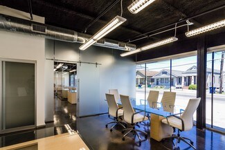 Front office facade is entirely sleek black glass with 8 parking spaces with fully paved exterior yard for storage or more parking. Rare high quality office space with custom glass partitions ( 8 built in desks ) , sealed concrete floors , built in cabinetry, storage, desks and conference table included in lease impressive reception area and conference room . 6 additional offices in rear with large room suitable to make kitchen / break room . Building has three (3) one half (1/2) bathrooms . L- shaped warehouse configuration has 5500 sq ft in main area and 2500 sq ft in rear extension .access to all warehouse space is provided by two (2) 10’ ft x 10’ ft overhead doors , one (1) 12’ ft x 12’ ft door and one (1) 14’ ft x 14’ ft overhead door . 110v and 220V electrical .must see to appreciate . Ready to Occupy.