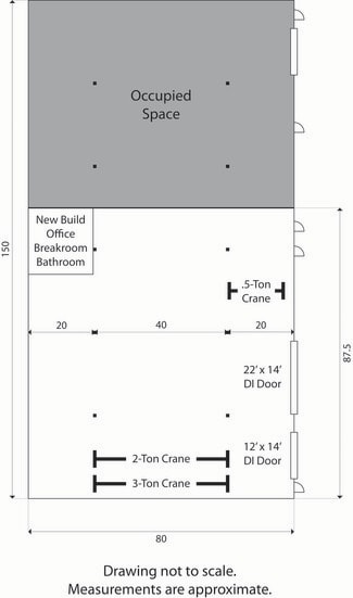 This building offers a rare combination of high-capacity cranes, heavy power, and excellent highway proximity, making it perfect for fabrication shops, manufacturing users, or contractors needing robust industrial infrastructure.