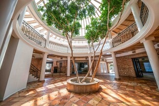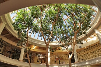 a grand atrium with a dramatic circular skylight—a striking design element that created the “destination” feel for which the building became