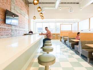 Housed in the former home of the JJ Newberry variety store, this classic 1948 property has been rebuilt with an eye toward revitalizing its vintage style with a sleek, updated look. In addition to the original lunch counter, it features two recording studios, space for events, and four on-demand conference rooms. Facing Main Street and backing up to the new ASU@citycenter campus, this iconic building with the distinctive blue awning is primed to play a key role at the heart of Mesa’s Innovation District. Access: Located a half-block from Mesa City Plaza, two blocks west of North Country Club Drive and one block east of the Phoenix Valley Metro Stop